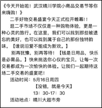 活动所有二手商品均为学生自己搜集,商品销售金额也为学生所有。历届学长学姐的销售金额数据激发了学生的激情,历届学生均可自行比对与超越。