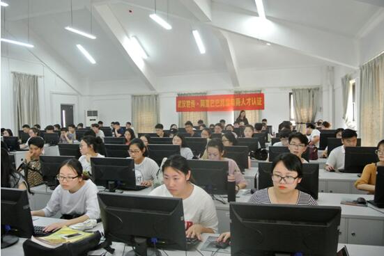 仪式结束后,电子商贸学院张李义院长与武汉世传信息技术有限公司董事长罗明先生、总经理叶斌先生、阿里巴巴“百城千校-百万英才”项目负责人周海先生商讨了如何进一步深入开展跨境电商校企合作,可以利用武汉自贸区、在校建立跨境电商产业生态链等推动跨境电商人才培育基地的发展。周海先生对学校领导重视、学院精心组织的揭牌仪式表示感谢,对张院长提出深入合作的意向将及时汇报阿里巴巴集团。 同时,在学院各位老师支持下,武汉世传信息技术公司在学院综2-507、509和510实验室组织跨境电商人才培训实习就业资格水平测试。此次资格水平测试的目的,主要是规范专业实习的教学环节,确保学生做到真正地在企业实习;通过企业实操培训,可以获得阿里巴巴跨境电商人才初、中级证书;帮助学生解决就业出路;也为学生今后创业提供很多的机会。