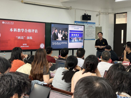 汇报结束后,彭校长、蒋老师与王督导分别进行了点评。彭校长指出,“两说”演练的核心目的在于高度凝练学院办学及专业建设成果,充分展示亮点与特色,并明确指出不足及未来努力方向,以便让全体教师能全面了解学院与专业情况。他认为,整体上6个汇报基本符合要求,但建议数据准确、特色亮点突出、人才培养质量保障做法和立足未来挑战问题。专业汇报要求各专业提法需与学校、学院保持一致。