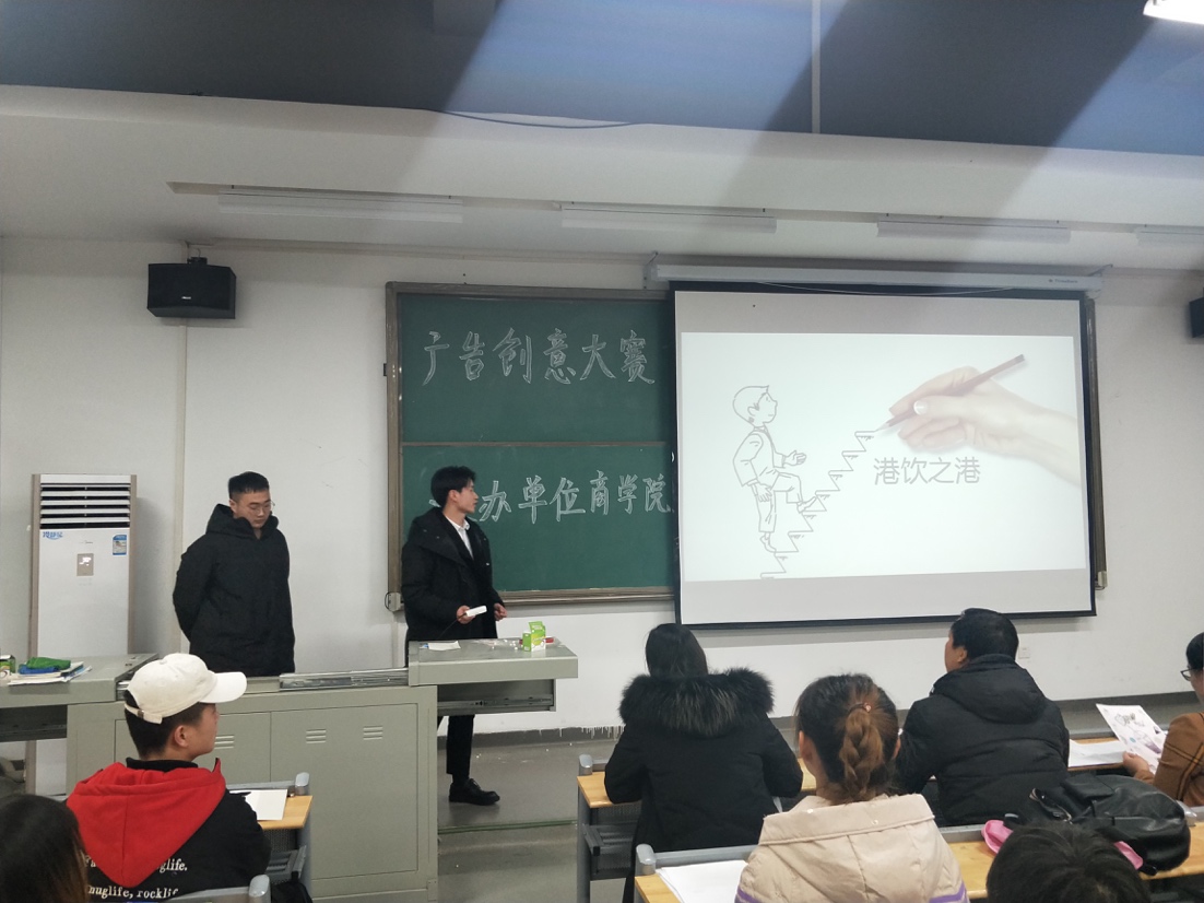 2019年12月18日,由太阳集团官网8722市场营销系主办的第一届广告创意大赛决赛在教1-304成功举行。评委老师有市场营销系系主任朱江鸿副教授及市场营销系多位教师。