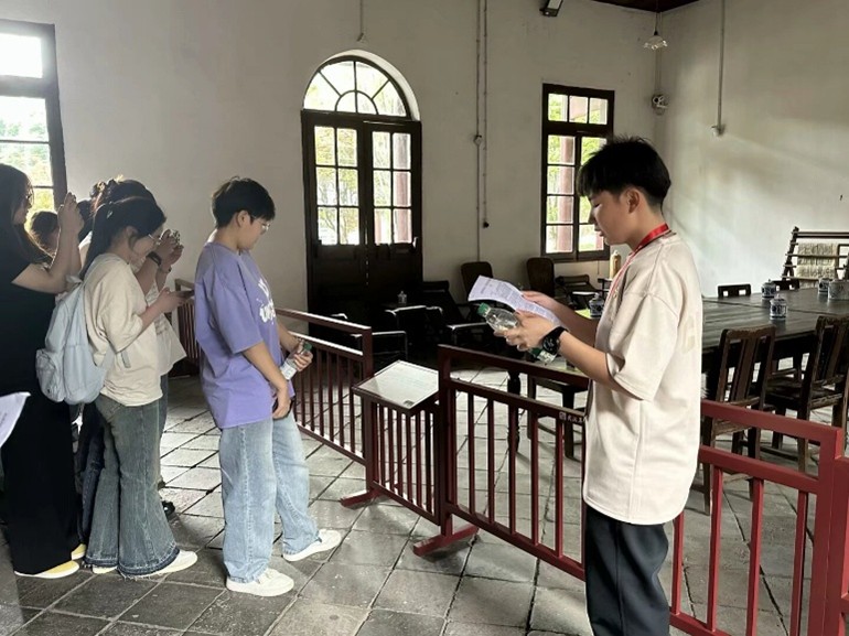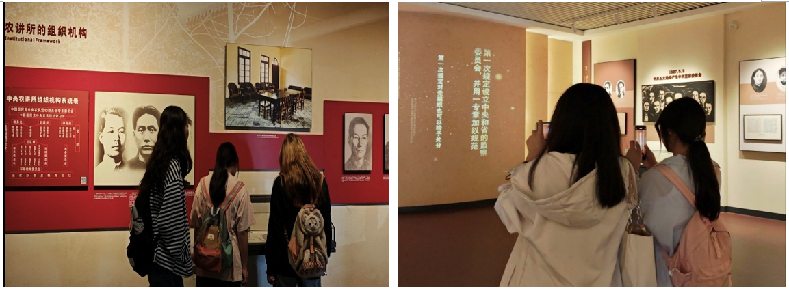 同学们走出毛泽东旧居纪念馆后,来到中共五大会址纪念馆。王晓余同志作为讲解员,为同学们讲解了中共五大的会议内容、历史意义以及当时的政治形势。同时,她还介绍了中共五大是中国共产党历史上具有重要意义的一次会议——这次会议,总结了大革命失败的教训,明确了革命的方向。在王晓余同志的引导下,同学们仔细参观了会址内的展览,认真阅读展板上的文字介绍,并观看了珍贵的历史资料。