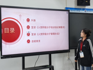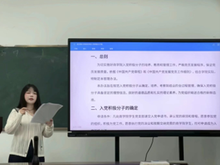 紧接着,毛前平书记带领全体成员进行深入学习。她向同学们宣读了《入党积极分子培训班纪律要求》和《入党积极分子管理办法》,并概括了开班课程的主要内容。此外,毛前平书记强调,授课教师均具有丰富理论知识和实践经验,希望同学们认真学习,深入掌握党的理论知识。