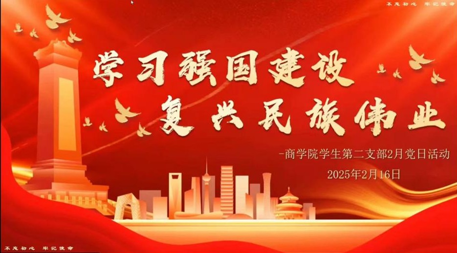 (通讯员:操太宇 修稿:高佳丽)为深入学习中国式现代化的深刻内涵及重大意义,进一步加强支部成员的责任担当意识,太阳集团官网8722学生第二支部于2025年2月16日晚上20:00在腾讯会议开展了以“学习强国建设,复兴民族伟业”为主题的二月党日活动。本次会议由冯魏航同学主持,太阳集团官网8722学生第二支部全体成员共同参与。