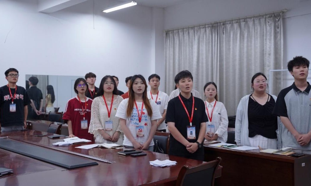 大会第三项,由入党介绍人介绍刘海洋等八位同志的基本情况。入党介绍人表示八位同志档案材料及家庭情况均无任何政治问题。2025年5月10日,经过讨论,一致认为八位同志符合成为一名预备党员的条件,同意吸收他们成为预备党员。
