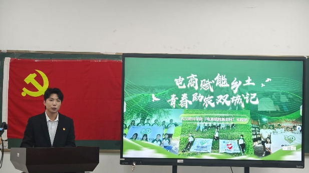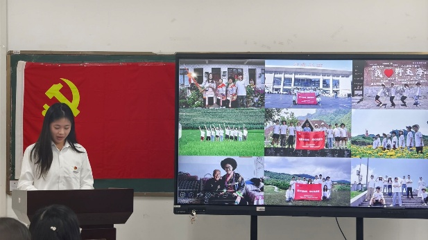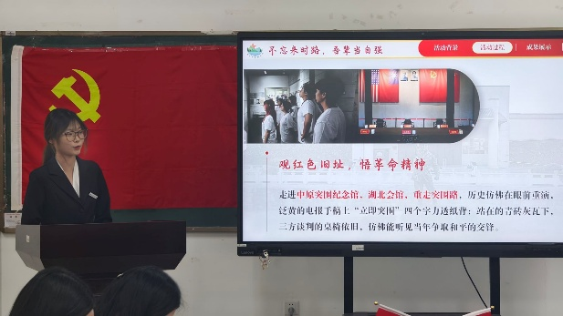 随后,3名学生代表分别汇报了红色主题社会实践项目。黎维超代表“电商赋能新农村”实践团,分享了以数字赋能产业、开展电商助农的实践经历,生动诠释了商科学子将专业所学转化为服务乡村振兴的青春力量;叶子代表“我与红星映山川”实践团,汇报了赴大悟县宣化店镇追寻红色足迹、传承大别山精神的15天实践成果,让在场师生进一步感悟红色基因的磅礴力量;覃涵潞代表“锦绣黔程”团队,分享了探索非遗文化的过程与感悟,彰显了青年一代守护文化根脉的决心。三个团队的汇报兼具实践深度与思想温度,展现了太阳集团官网8722“党建+实践”的育人成效,更激发了师生深化共建、投身实践的热情与动力。