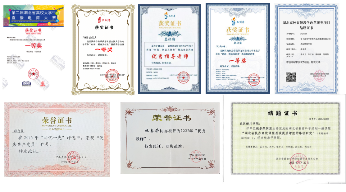 指导学生在OCALE跨境电商创新创业大赛、互联网+挑战赛、湖北省电子商务直播大赛中取得优异成绩。