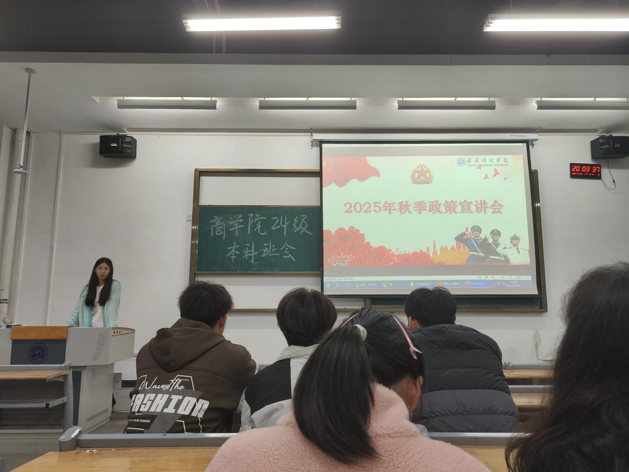 为打消学生对 “参军影响学业”“军营生活艰苦” 的顾虑,班会特别设置 “政策解读专场”。辅导员详细介绍了国家针对大学生参军的专项保障政策:从 “保留学籍、退役后返校复学” 的学业支持,到 “考研加分、专升本免试” 的升学优惠,再到 “学费减免、助学金补贴” 的经济帮扶,以及 “退役后公务员定向招录、创业税收减免” 的就业支持,全方位展示了 “参军不仅不耽误成长,更是一次‘稳赚不赔’的人生投资”。
