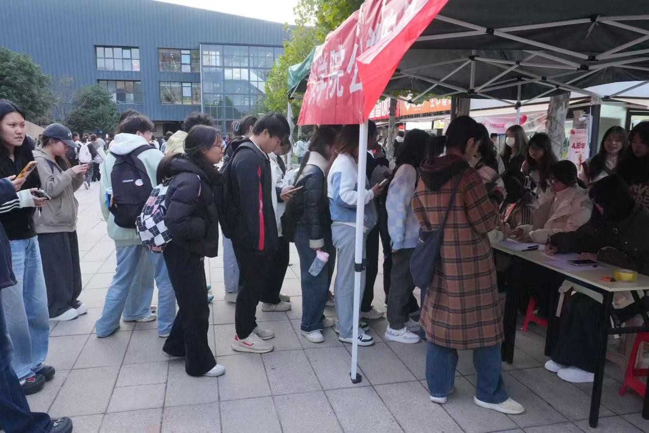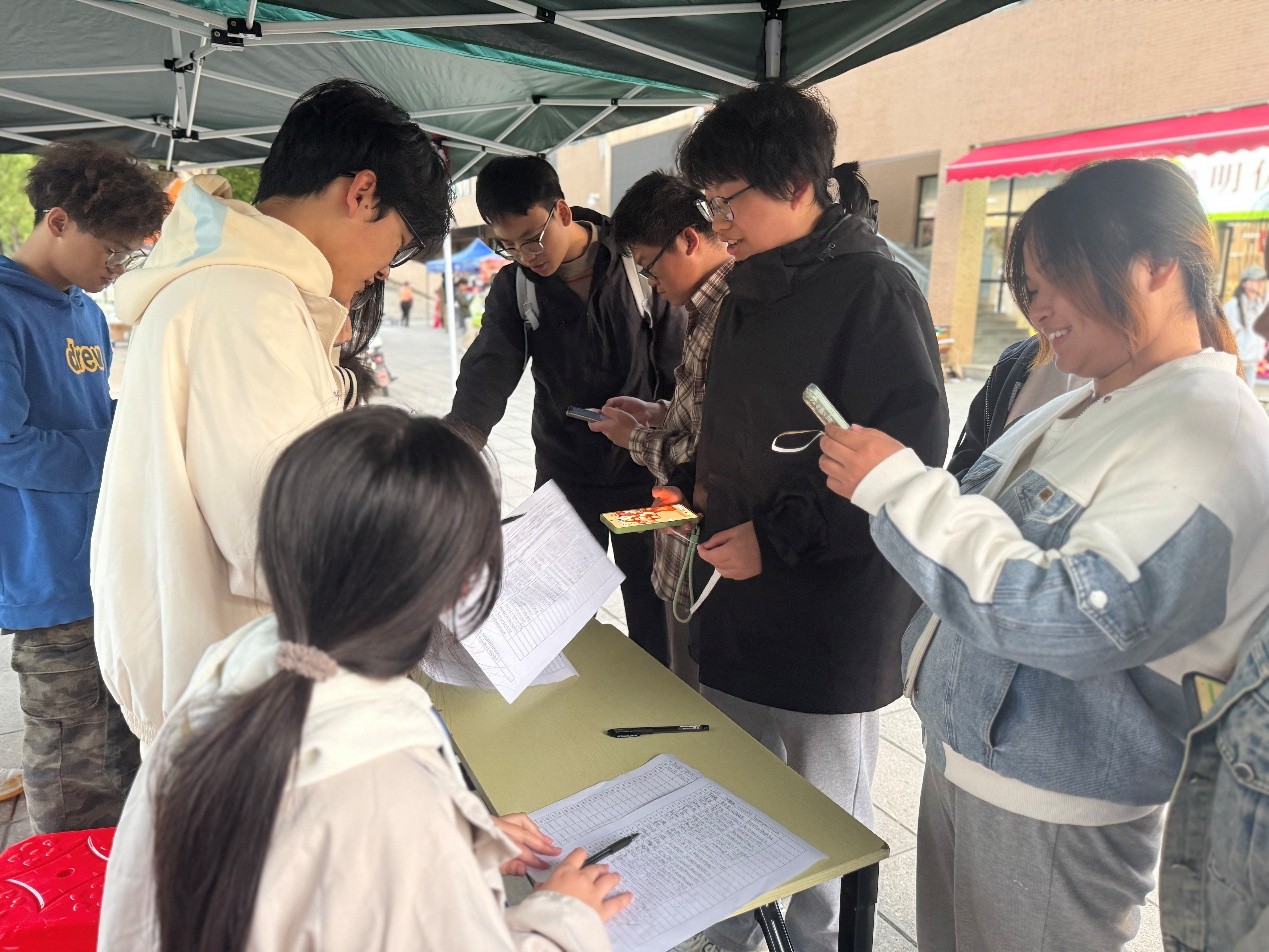 10月21日晚,学生会在校园超市门口搭建起宣传点,红色的横幅在灯光下格外醒目,帐篷前聚集了不少被吸引而来的同学。工作人员热情洋溢地介绍活动内容与参与方式,纸质报名表在同学们手中传递,仿佛一封封充满温度的邀请函。报名现场气氛热烈,大家踊跃报名,展现了同学们对公益跑的支持与期待。学生会的同学们高效协作,在短时间内完成了报名信息的整理、参与手环与奖品的采购,并细致安排了值班表,确保活动期间服务到位、秩序井然。