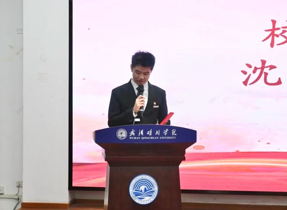 随后,校学生会主席沈楚晗发表代表发言。他以“心往一处想、劲往一处使, 建设学生会新力量”为核心主旨,结合校园学生工作实际,寄语商院学子要以青春为帆、以团结为桨,在携手同心中共筑发展合力,在锐意进取中勇担时代使命,在服务同学的细微处、助力学院发展的关键处彰显青年一代的责任与价值,发言铿锵有力、催人奋进。