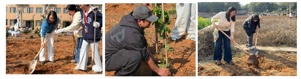 活动尾声,全体参与人员齐聚在新栽种的树苗旁,共同拍摄大合照。大家并肩而立、笑容灿烂,在春日暖阳下留下了青春与绿意相融的美好瞬间,更展现出大家团结协作的团队精神与热爱劳动、践行绿色的责任意识。
