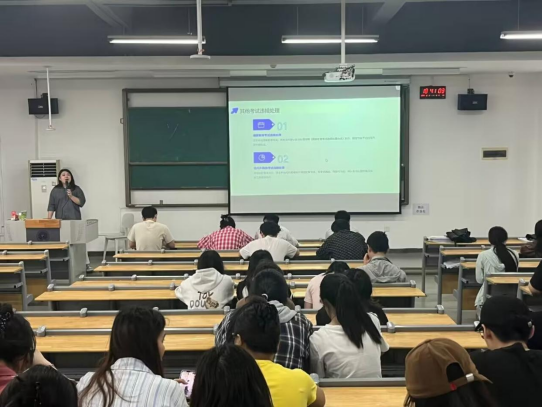 (辅导员李成成给24级专科生现场讲解考试注意事项)