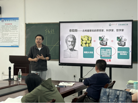 本次示范课学院特别邀请了武汉大学经济与管理学院金融工程教研室主任张培老师主讲。在课堂上,张培老师首先向各位老师分享了他对教师职业的理解和感悟,他表示“教师是值得大家托付终身的职业”,并分享了他是如何在空入一人的教室中激情澎湃的讲课。随后张培老师以“期权工具概念的理解”为题为学院教师进行了示范课的分享,他凭借丰富的教学经验和深厚的专业知识,运用多样化的教学方法,如案例分析、小组讨论与互动式教学,生动地讲解了课程中的核心知识点。案例选取紧密结合当下课程思政的热点,激发了老师们的热烈讨论,现场气氛十分活跃。示范课结束后,参与观摩的教师们进行了深入的交流与研讨。大家对示范课的教学内容设计、教学方法运用以及师生互动效果给予了高度评价,同时也就如何进一步优化教学过程、提升教学效果提出了宝贵建议。