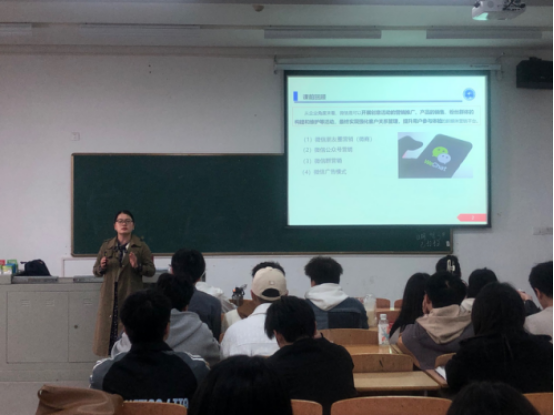 艾保老师为大家讲授了《新媒体运营实务》中微信营销章节内容。艾老师课前准备充足,课堂设计巧妙,多次使用现代化教学平台与学生进行课前小调查、课堂活动的师生互动、教学检测,教学方法得当,课程思政润物细无声,课堂驾驭能力强。学生听课认真,师生互动氛围浓厚,不断引发学生积极思考。