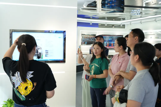 在杭州跨境电商综试区,讲解员系统分析了行业发展形势与政策创新,师生们深入了解了杭州作为“中国电商之都”的顶层设计与实践成果。