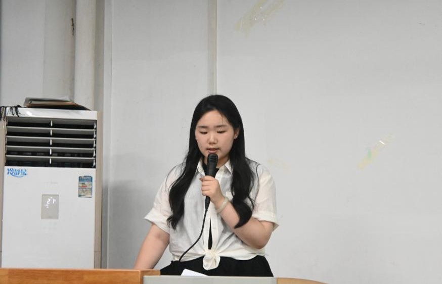 会议伊始,毛思怡同学为大家分享经验。她率先介绍了自己是跨专业考研,表示本科不是终点,而是人生的起点。随后,毛思怡同学围绕英语学习经验和政治英语专业课两方面分析考研痛点,着重强调了单词量、语法与听课在备考时发挥的巨大作用。同时毛思怡同学还提到:在专业课备考的过程中,既要学会收获信息,也要学会收集信息差,更要深入地了解目标。她还表示模拟考试能够让考生们更加适应考试的环境和节奏,为在考场上发挥出最优越的水平打下坚实基础。