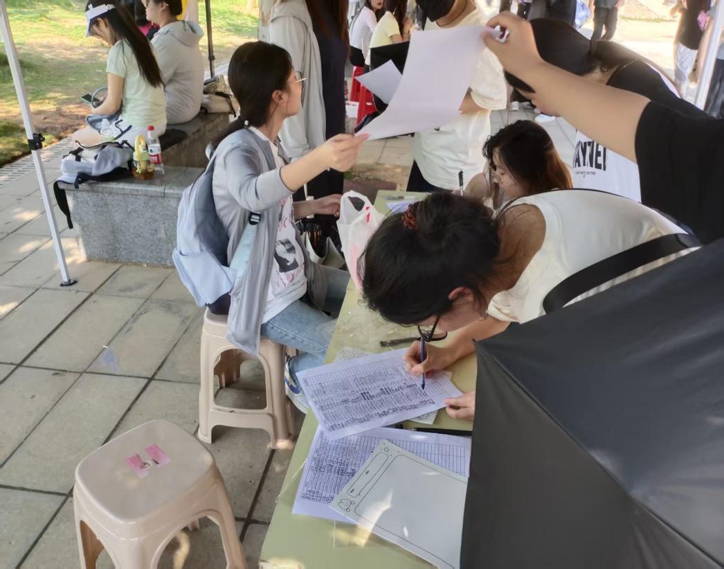 随着下课铃的响起,同学们迈着轻快的步伐来到帐篷下,井然有序地排起了长队,在表中写下自己的信息,拿着信纸回去写下一字一句的感情文字,把一些或内心或平常,还没说或有提及的话给朋友写下,这既是维持友谊小船不翻的方法,也是增进美好感情的方法。